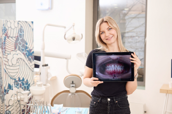 Als Erstes fertigt der Kieferorthopäde mit Hilfe einer A-Silikon-Masse Abdrücke der Zahnreihen an oder führt ein intraorales 3D-Scanning durch.